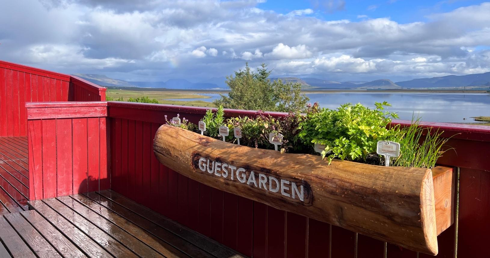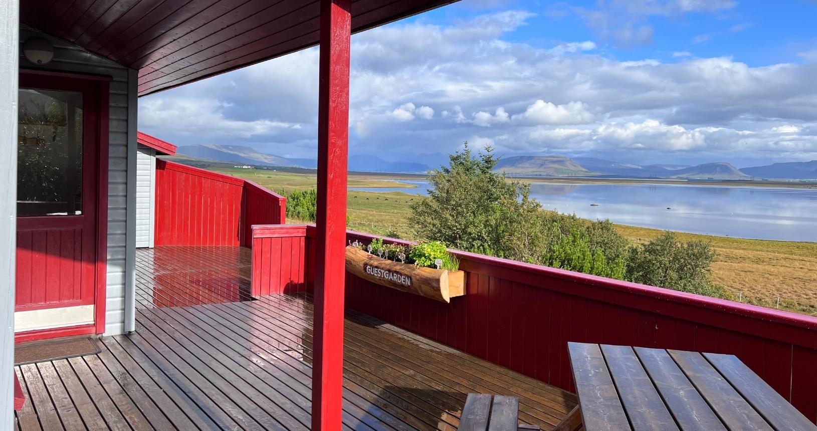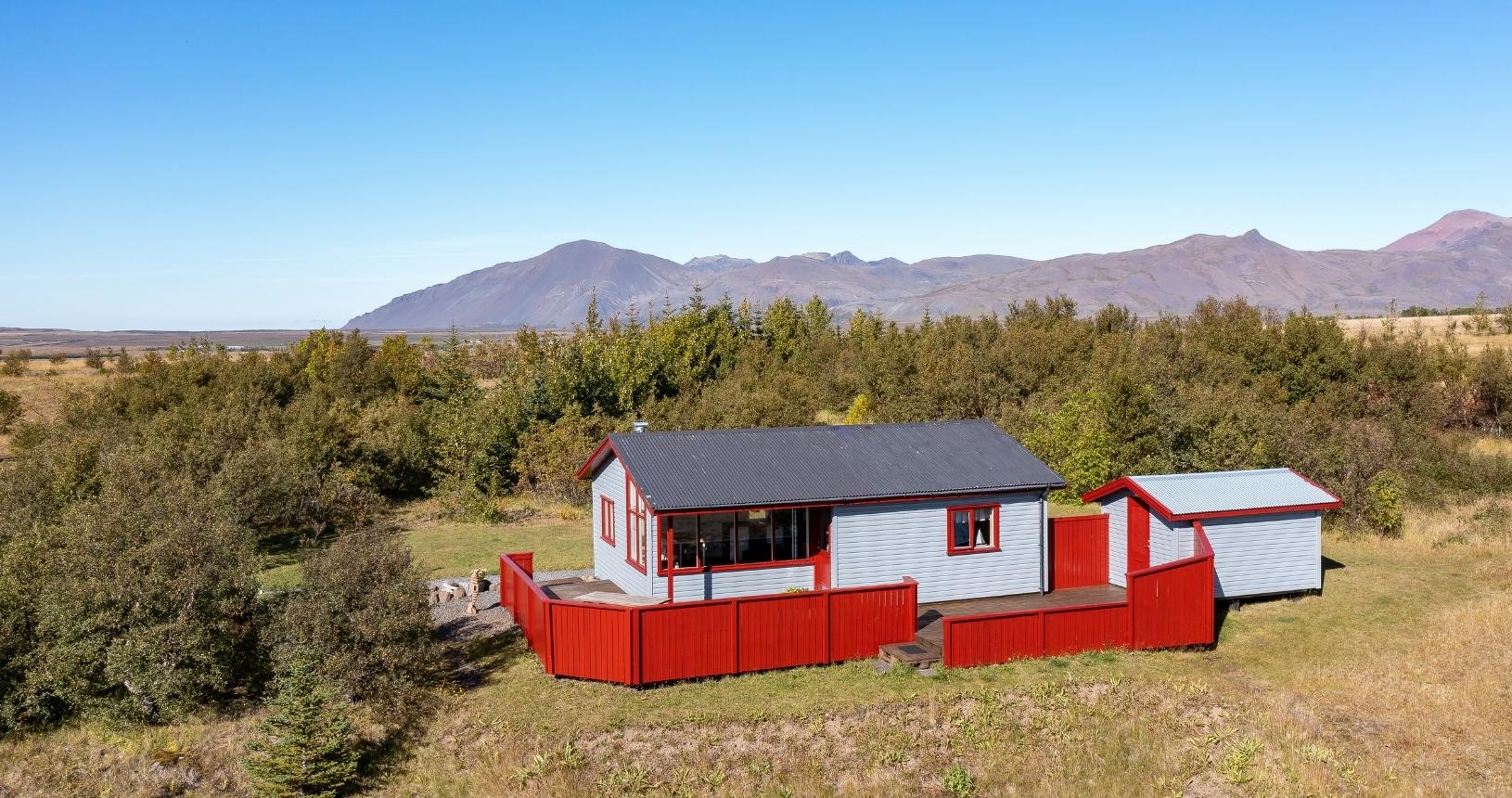 It's located in West Iceland with a view over Lake Eiðisvatn,
