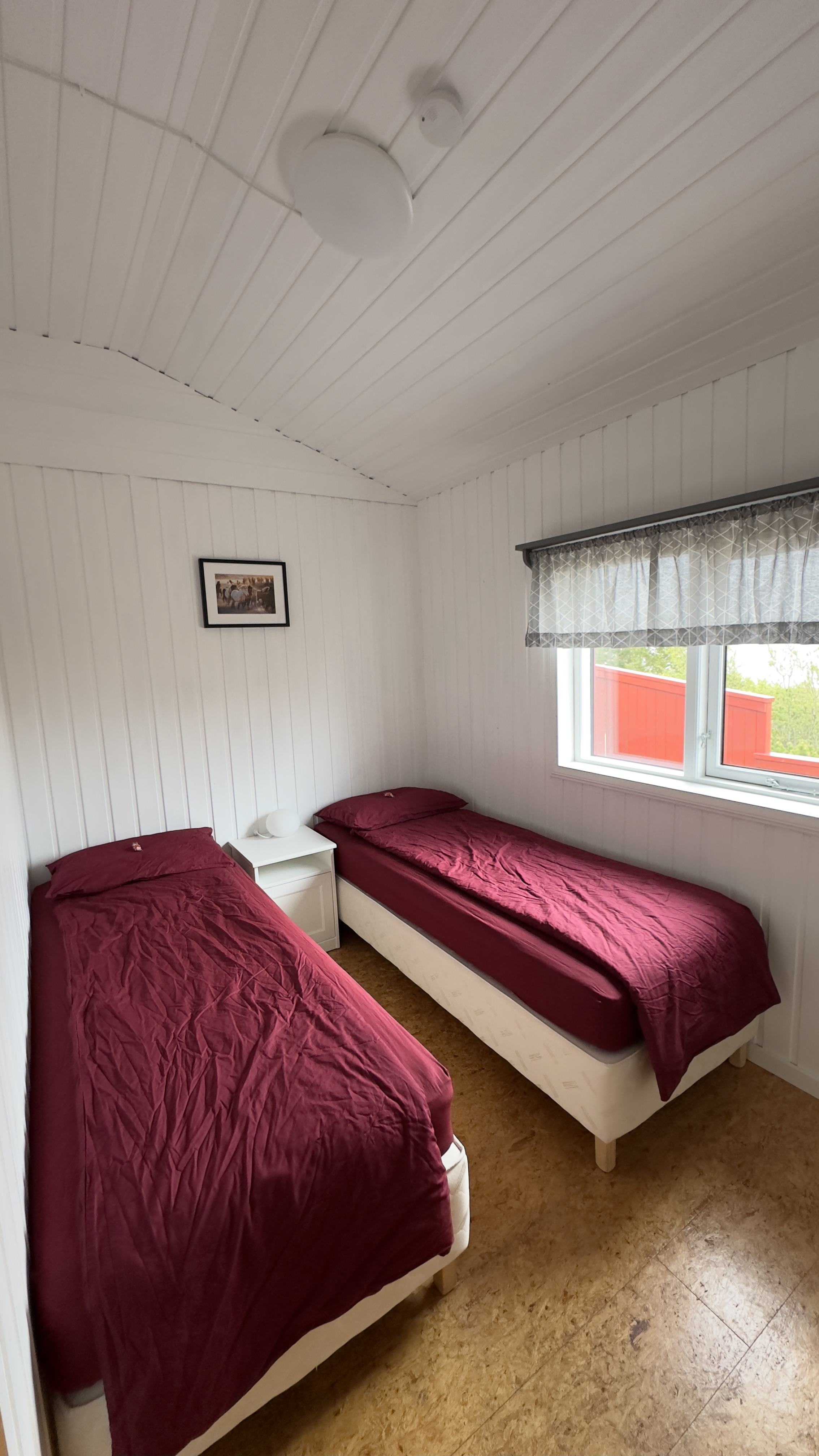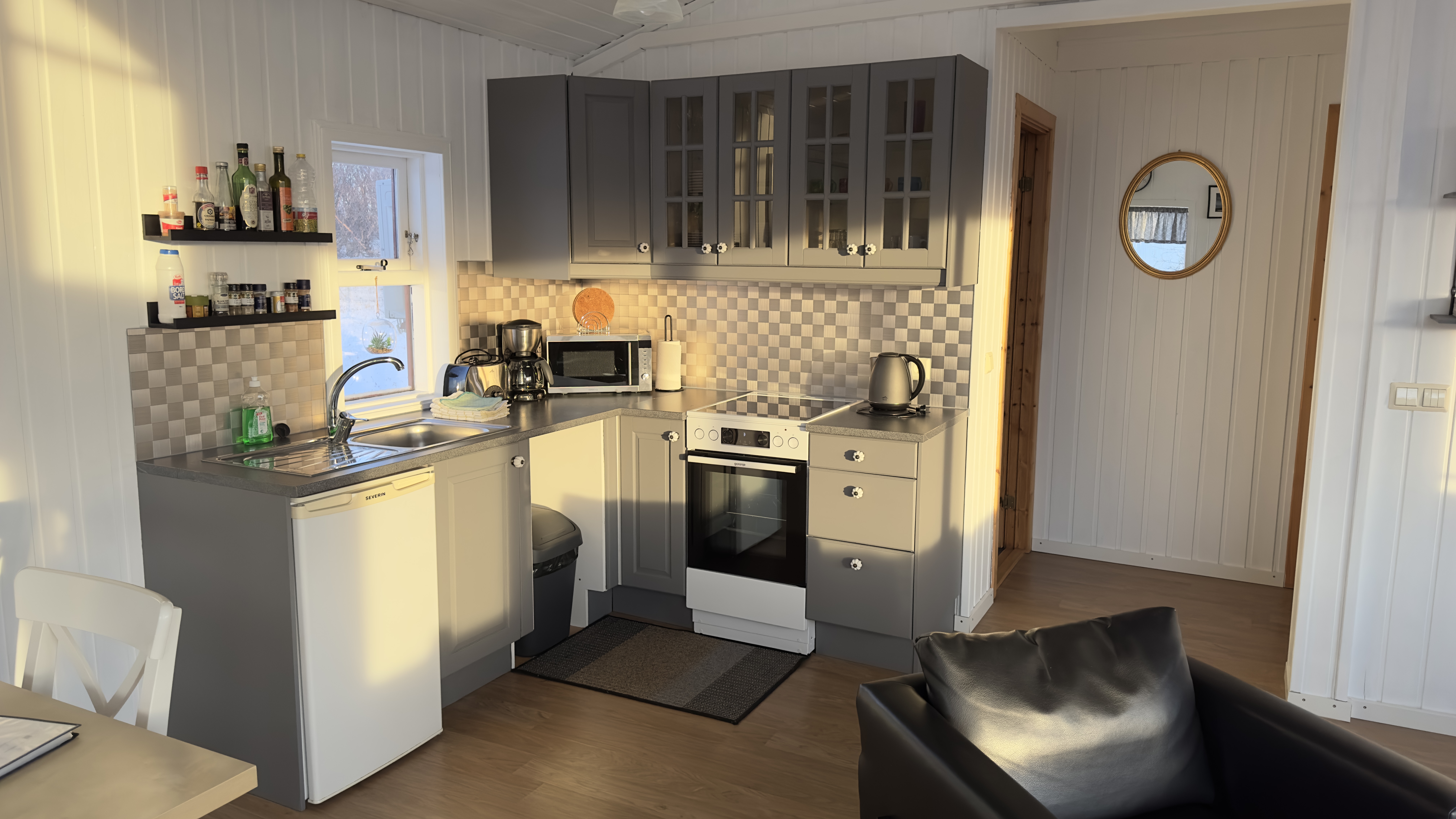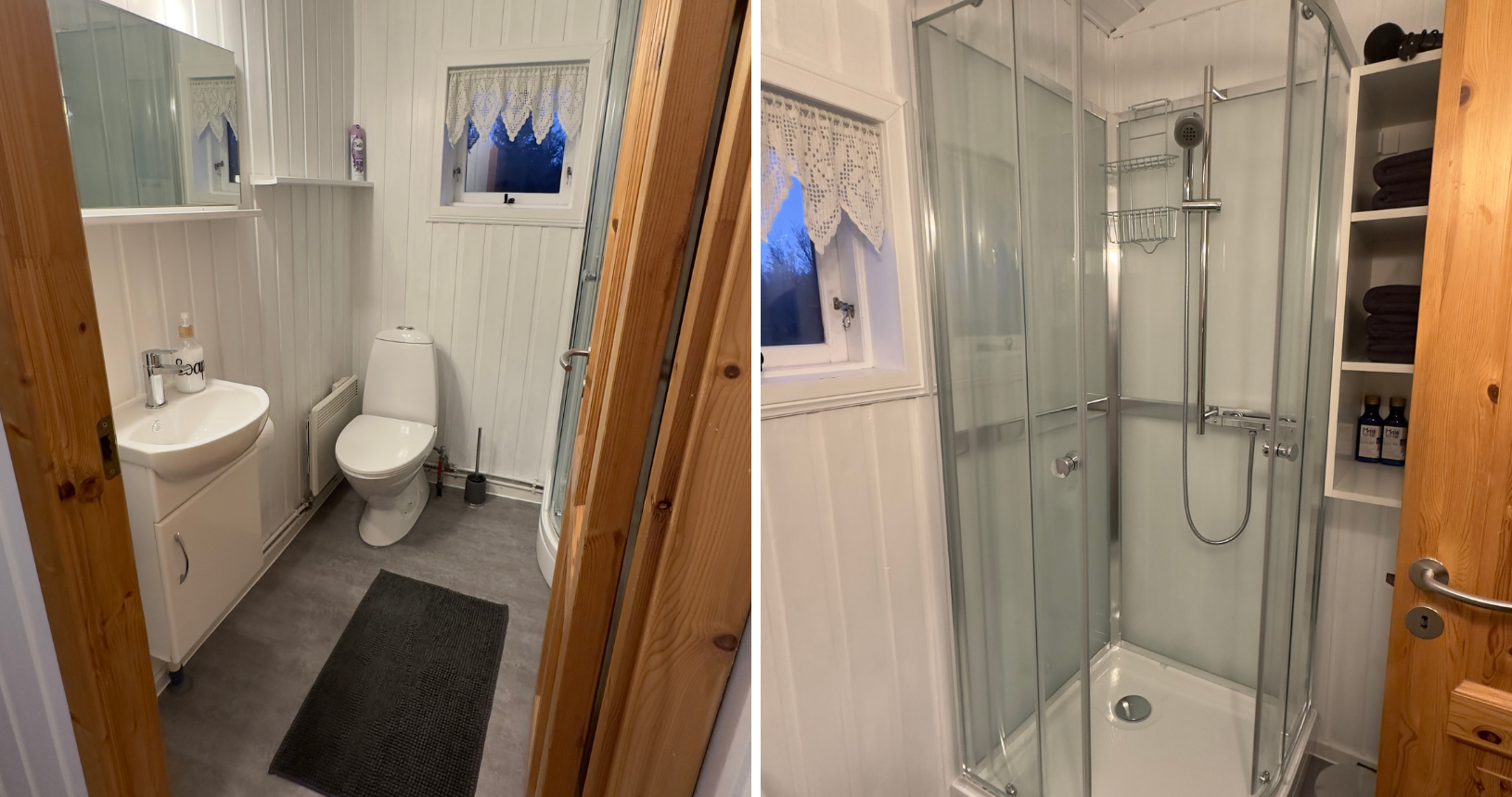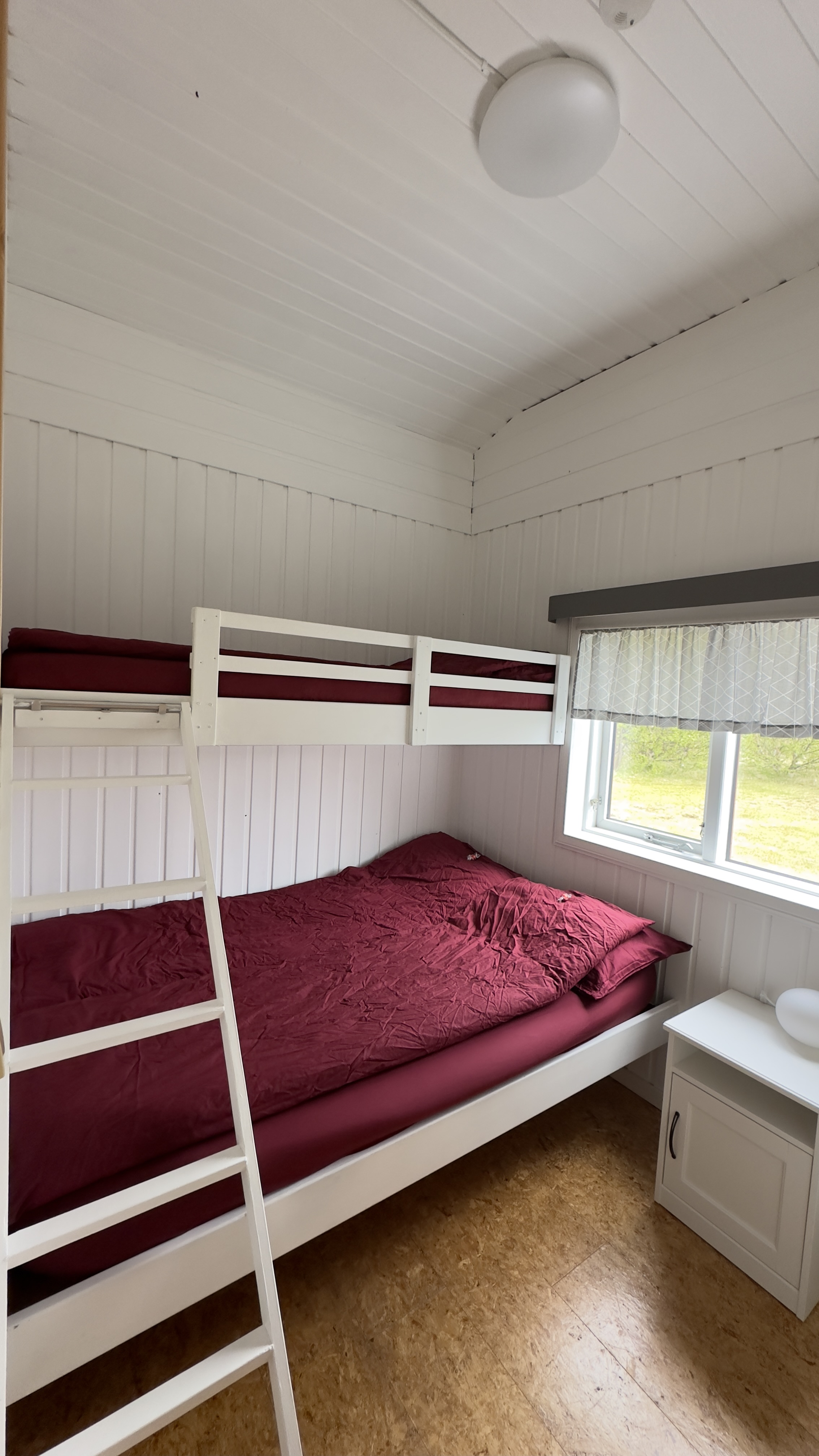 Our cottage has a spacious living, dining and kitchen area, 1 bathroom (sink, toilet and shower) and 2 bedrooms.